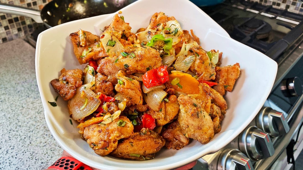 About 12 years ago, I made a similar Pepper Chicken recipe when I competed in a global cooking competition in Seoul, South Korea. Yet, I cannot believe I’ve never shared this recipe with you until now. We’ve done Pepper Crab, Lemon Pepper Wings, Caribbean Pepper Calamari, Pepper Lobster, Pepper Wings, and Pepper Shrimp, to name a few. But never this one.
