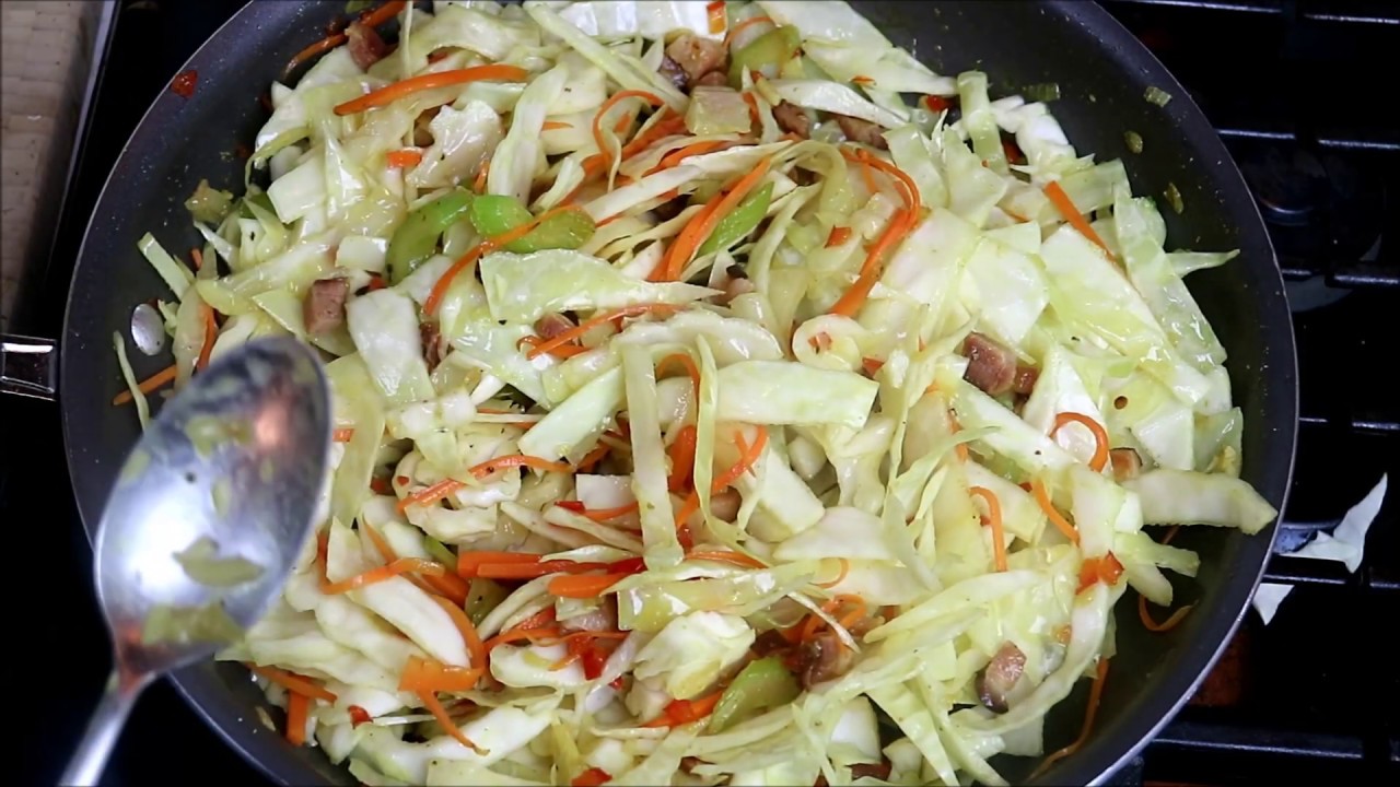 Learn how to make a quick and tasty gluten-free dish with Cabbage and diced Ham pieces.
