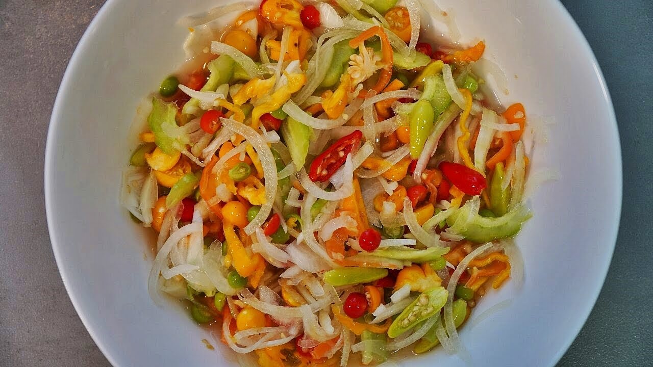 Here’s yet another spicy pickle to serve as a side to your fav curry dishes or as in my case, with Chicken Pelau. Using freshly harvested hot peppers from my garden as the growing season comes to an end, it was an excellent use of the final produce for 2024. While these pickled peppers can be used immediately, the remainder will keep for months in the fridge and warm me up during those cold winter nights in Canada.