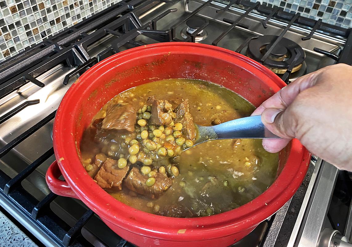 The two sort of personalization with the recipe is.. taste and adjust salt at the end and determine if the gravy’s consistency (thickness) is to your liking. I recommend that you use your spoon to crush some of the pigeon peas to help thicken the gravy. However, do keep in mind that the residual heat in the pot will further cook this and as it cools, it will thicken further.